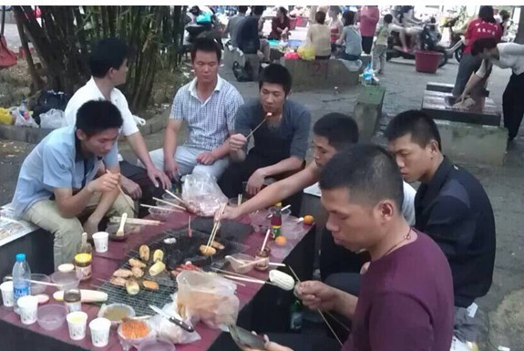 傍晚,王经理带领着保洁大姐认真的包着饺子,刘经理和秩序员们精心的烧烤,大家都忙得不亦乐乎,乐在其中。最后,我们吃着自己亲自烹调的食物,都觉得特别美味,一个个都感到特别满足。