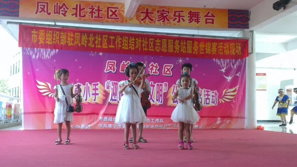 8月28日上午九点半,山水美地物业楼三楼好生热闹,为迎接世锦赛即将到来,大伙欢聚一堂,举办一场小手牵大手“迎世锦·倡文明”公益演出。此次公益演出由凤岭北社区南湖街道办主办,山水美地及荣和大地部分业主均参与了本次公益演出。在主持人一番慷慨激昂的开场白之后,文艺汇演正式开始。