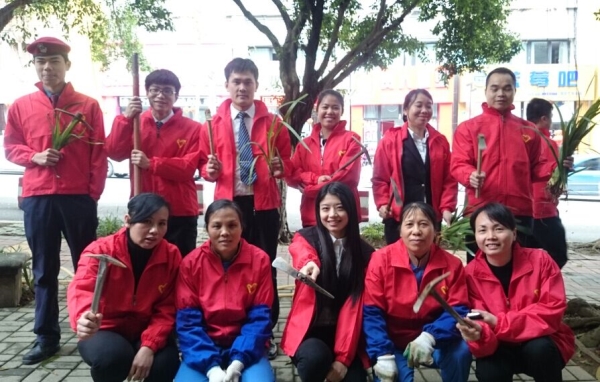 3月12日这一天,暖风和熙,草木飘香。山水美地服务中心员工们身着红色荣和物业志愿者服装,组成一支20人左右的志愿者植树小队,带着铁铲、水桶、绿苗等植树用具,前往山水美地小区各个组团,对裸土区域进行栽苗、松土,以实际行动向广大业主、员工传播荣和物业员工坚忍不拔、勤劳奋进的精神。志愿者们之所以选择在植树节当天植树,一是结合“植树节”为节日背景,传播志愿者服务精神;二是为了迎合“春种一粒粟”的播种时节,以提高绿苗成活率。活动现场,志愿者们相互协作、干劲十足,不出一个上午,手上的绿苗便已全部补种完毕,活动得以顺利落幕,志愿者们尽管很疲惫,但验收成果时,看到裸土区域已整齐覆盖上绿苗,更多的是欣慰。