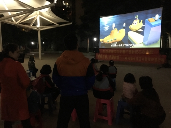 为丰富社区居民业余生活,2016年3月11日晚上,荣和物业邀请广西广电总局电影放映队到荣和新城、山水美地、荣和大地小区为社区居民放映露天电影,本次放映电影两部,有倍受小业主们喜爱的动画电影《熊出没》及院线口碑倍棒的《夏洛特烦恼》。